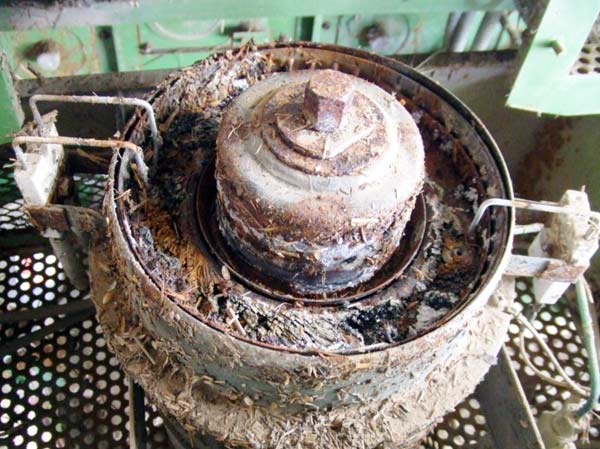 4.塩水被害を受けた乾燥機(機体の内部)の一例を紹介します。